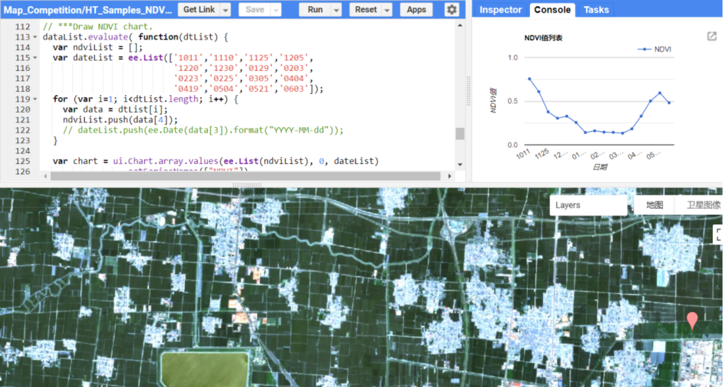 Google Earth Engine平台下山东省淄博市桓台县冬小麦NDVI时序变化分析结果