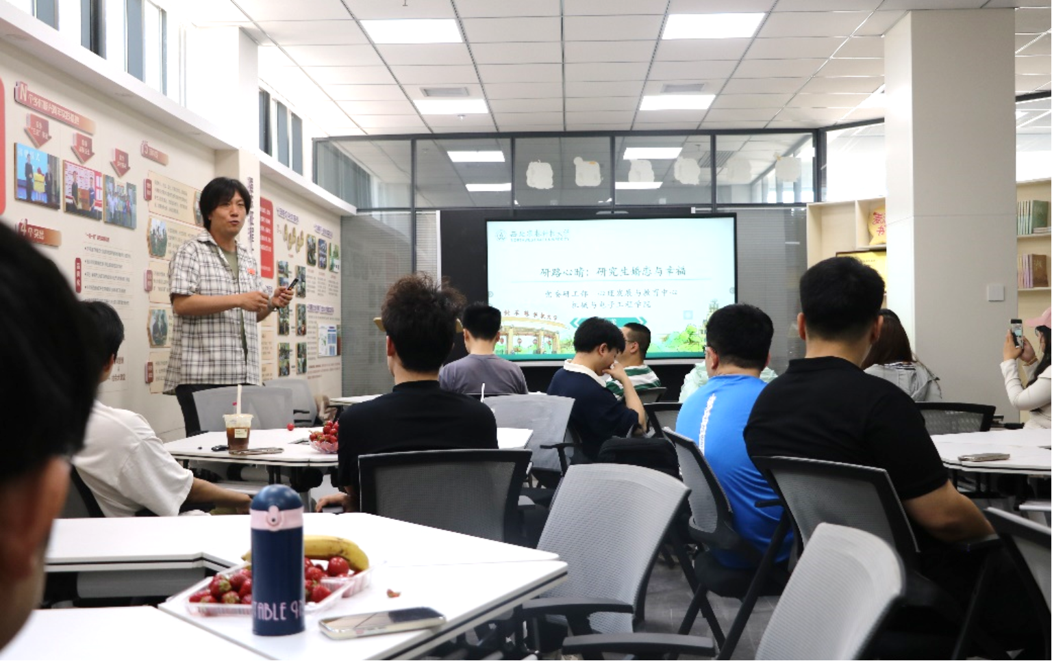 为引导研究生塑造积极心理状态,提升工科研究生人文素养水平,深入推广健康恋爱心理学知识,引导同学们构建科学、理性的恋爱价值观。2025年4月20日,由党委研工部联合心理教育发展中心主办、机电学院承办的第六期研路心“晴”——【机电专场】“学术与爱情双轨并行”在北校区“一站式”学生社区成功举办。